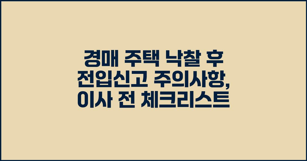 경매를 통해 주택을 낙찰받은 후의 과정은 예상보다 훨씬 복잡할 수 있습니다. 많은 사람들이 낙찰받고 나면 그저 흥미진진한 새 집으로의 이사를 생각하게 되지만, 전입신고와 같은 중요한 절차를 간과하기 쉽습니다. 경매 주택 낙찰 후 전입신고 주의사항 | 이사 전 필수 확인을 기억하며 준비하세요. 이 단계는 주거 생활의 안전성과 안정성을 확보하는 데 큰 역할을 합니다.