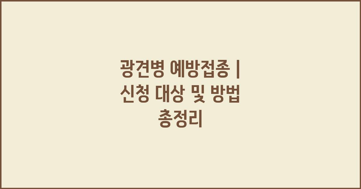 광견병 예방접종을 받는 것은 반려동물뿐만 아니라 인간에게도 매우 중요한 일입니다. 광견병은 매년 수많은 생명을 앗아가는 치명적인 질병이기 때문입니다. 이 글에서는 광견병 예방접종 | 대상 및 신청 방법 안내를 통해, 누가 예방접종을 받는지, 그리고 어떻게 신청할 수 있는지에 대해 쉽고 분명하게 설명드리겠습니다.