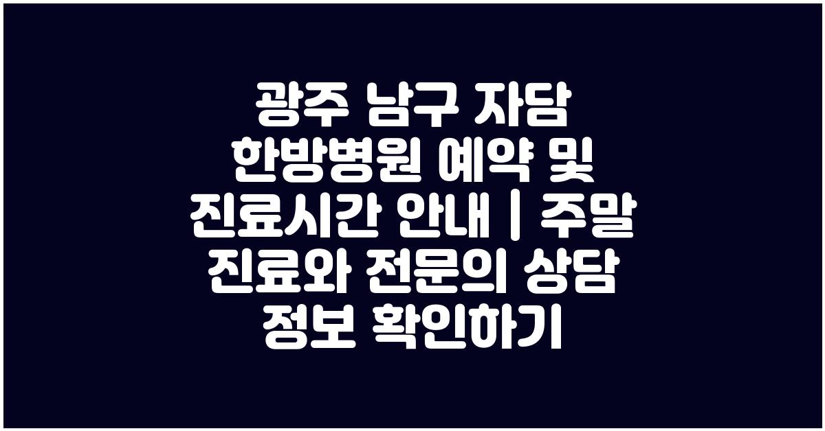 📅 광주 남구 자담 한방병원 진료시간 안내