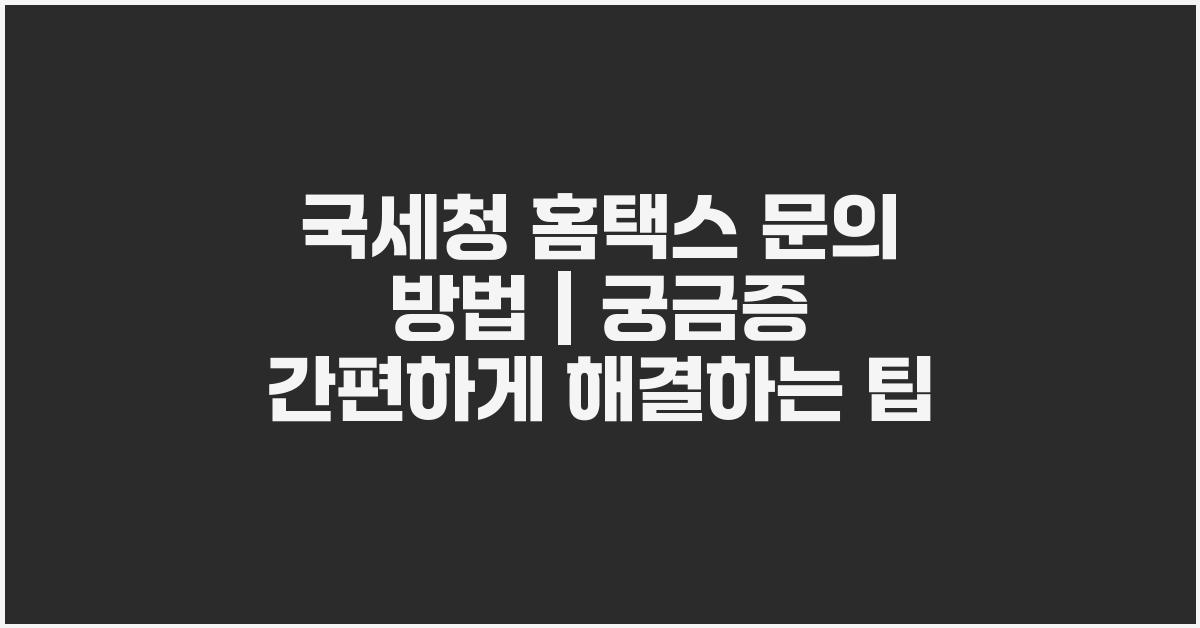 국세청 홈택스 문의 방법 | 간편하게 문의하는 방법에 대해 알아보았습니다. 이 글이 여러분의 궁금증을 조금이라도 덜어주었다면 기쁩니다. 안전하고 간편하게 세무 업무를 처리하는 여러분 되시길 바랍니다!