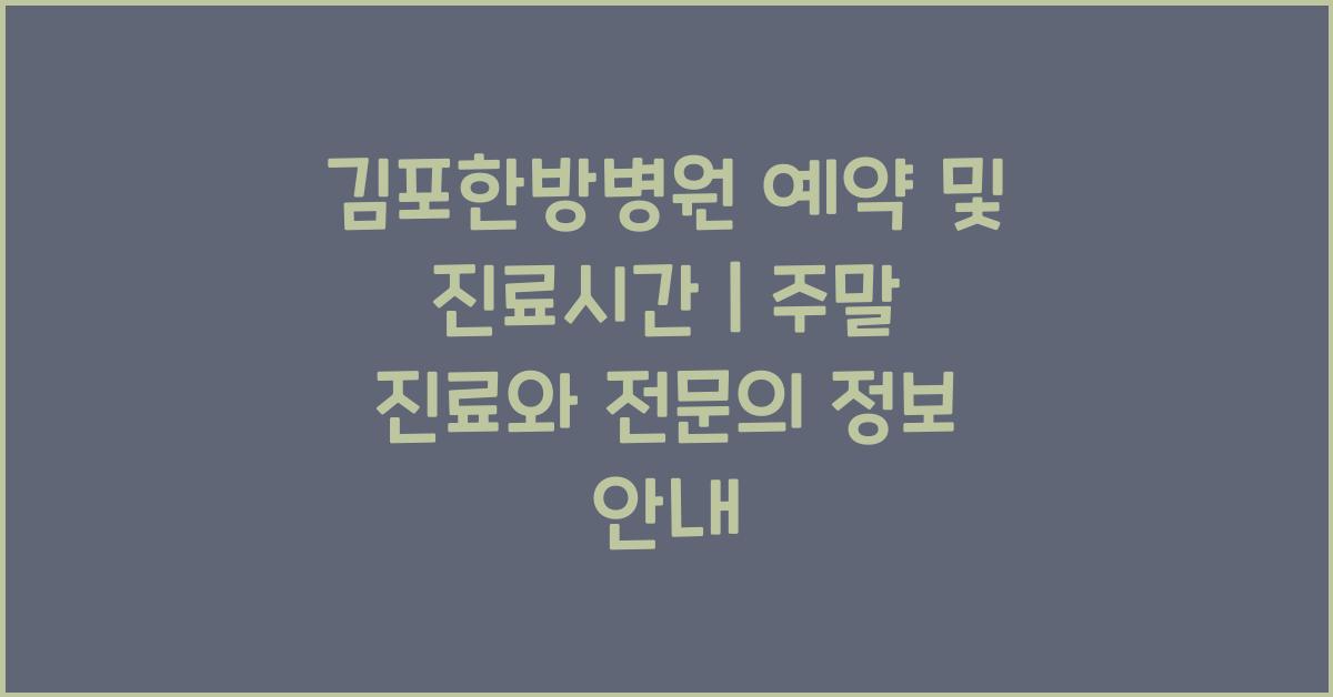- A1: 김포한방병원은 전화나 온라인 예약 시스템을 통해 예약 가능합니다. 편리한 방법으로 선택하세요!