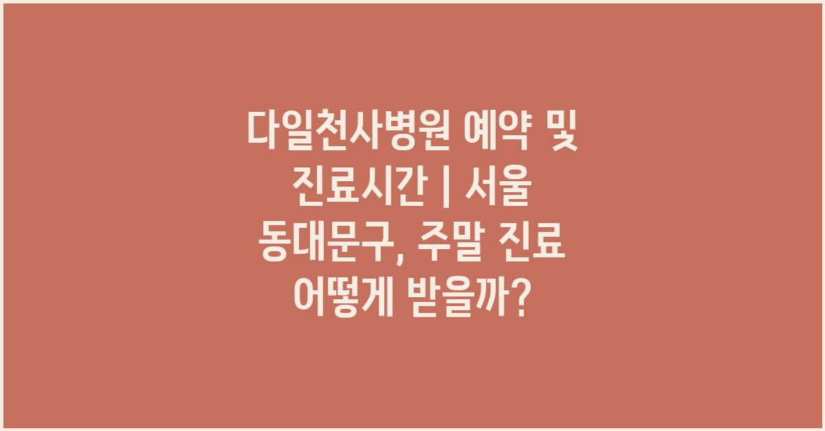 📅 다일천사병원 예약 및 진료시간 알아보기