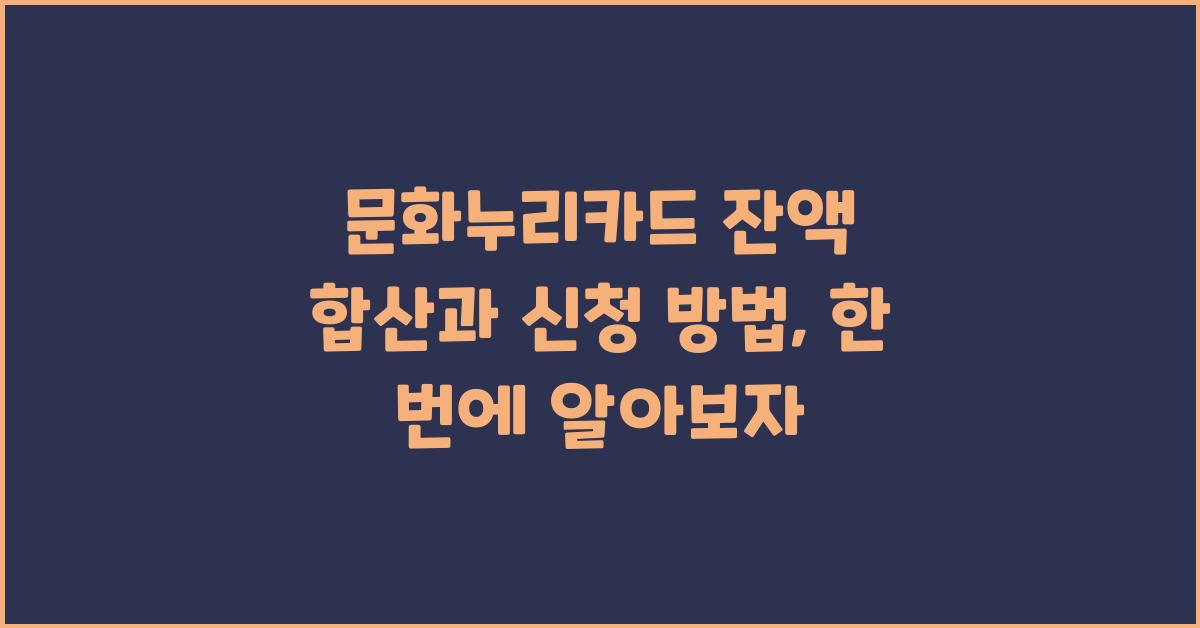 다양한 행사나 문화시설에서 사용할 수 있는 문화누리카드는 사용자가 더 풍부한 경험을 즐길 수 있도록 돕는 훌륭한 도구입니다. 하지만, 많은 사람들이 이 카드의 잔액 확인이나 합산 방법에 대해 막연히 어렵게 느낄 수 있습니다. 개인적으로 몇 번의 시행착오를 겪으면서도 성공적으로 잔액을 합산하고 신청하던 기억이 새록새록 납니다.