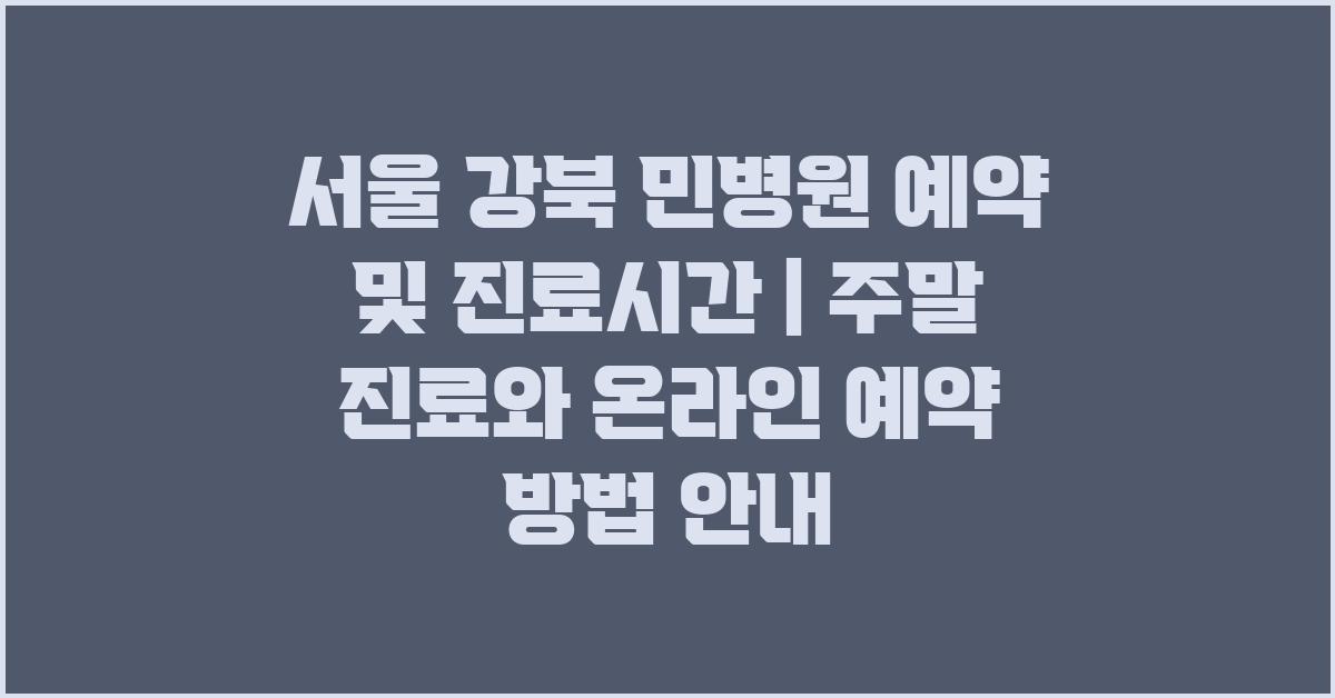 이 병원은 주말에도 진료를 제공하여 바쁜 일상 속에서도 언제든지 건강을 체크할 수 있는 편리함을 제공합니다. 서울 강북 민병원 예약 및 진료시간은 명확히 안내되어 있어, 방문 전 필요한 정보를 쉽게 확인할 수 있습니다. 병원에 처음 방문하는 분들께는 조금 긴장될 수 있는 경험이겠지만, 걱정하지 마세요. 여러분을 위해 모든 정보를 준비했으니 차근차근 살펴보겠습니다.