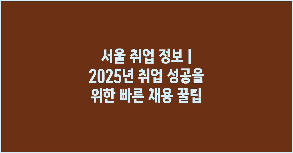 💡 서울 취업 정보 | 빠른 채용 정보 찾는 최고의 방법