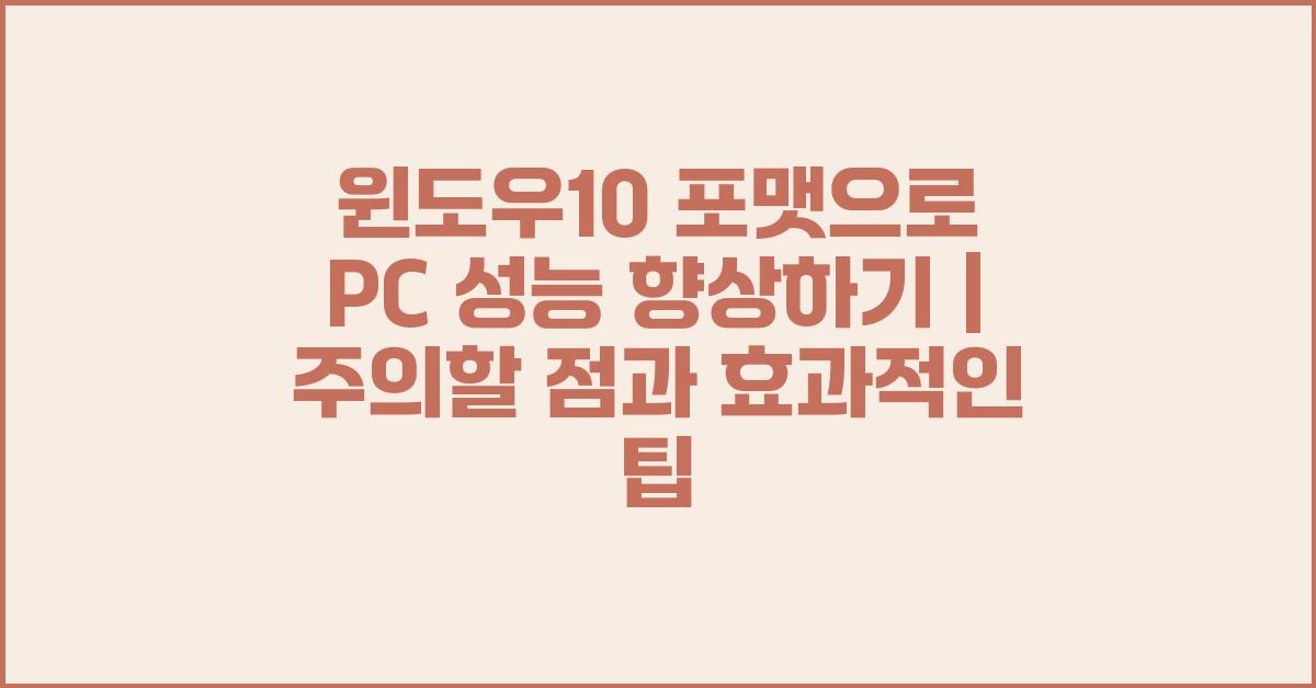 여러분, 혹시 지난 몇 년 동안 사용해온 PC가 느리게 느껴지진 않으셨나요? 시간이 지남에 따라 소프트웨어가 쌓이고 여러 프로그램이 설치되다 보면 시스템이 불필요한 무게를 느끼게 되는 법입니다. 제 경험상, 정기적으로 권장하는 방법 중 하나가 바로 포맷입니다. 윈도우10 포맷으로 PC 성능 향상하기는 단순한 방법이지만, 정말 효과적인 결과를 가져올 수 있습니다.