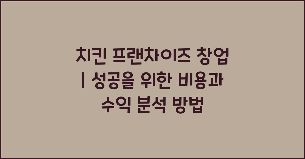 치킨 프랜차이즈 창업 | 비용과 수익률로 성공 이끄는 가이드