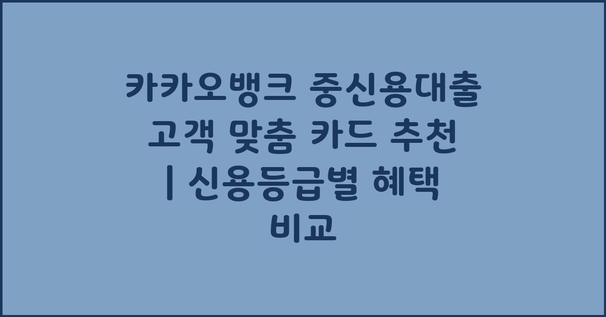 여러분, 최근 금융 시장에서 카카오뱅크의 신용대출 상품이 화제가 되고 있다는 사실 알고 계셨나요? 카카오뱅크 중신용대출 고객 맞춤 카드 추천 | 신용등급별 비교를 통해 여러분에게 맞는 최적의 카드를 소개해 드릴게요. 신용대출을 이용하는 많은 분들이 가장 먼저 고민하는 부분이죠. 어떤 카드를 선택해야 할지! 아마 여러분도 같은 고민을 하셨을 겁니다.
