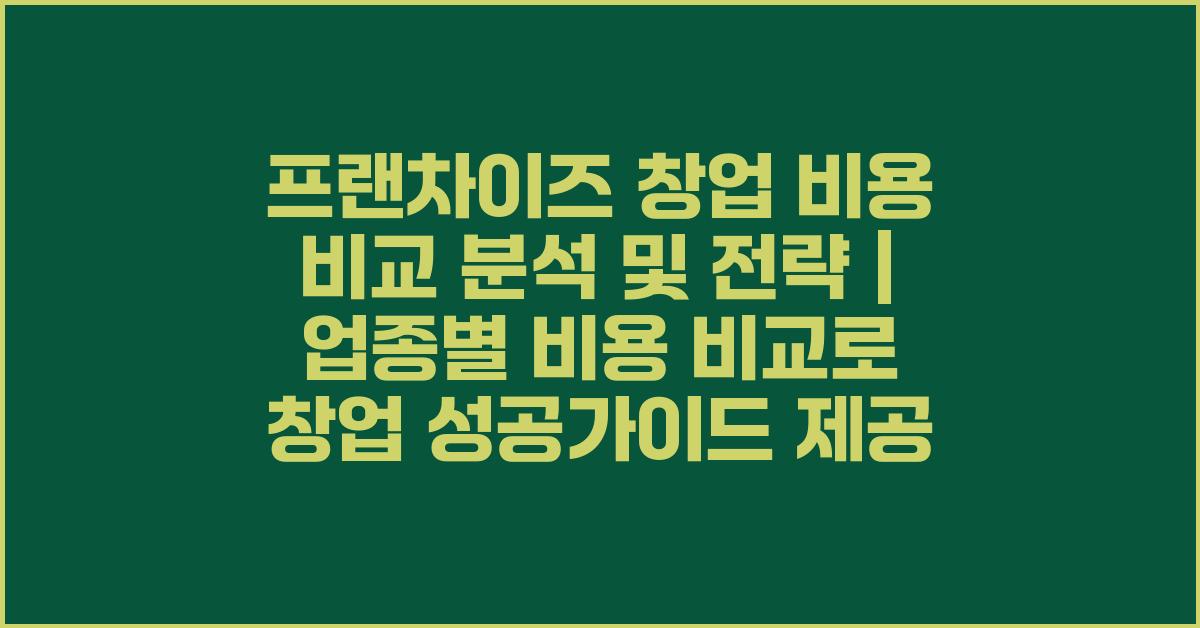이 글을 통해 여러분은 비용뿐만 아니라 어떤 업종이 현재 시장에서 인기 있는지, 그로 인해 수익을 올릴 수 있는지를 알 수 있을 것입니다. 여러 브랜드들의 초기 비용, 로열티, 광고비, 인테리어 비용 등을 종합적으로 비교함으로써, 여러분이 원하는 프랜차이즈 창업의 성공적인 전략을 수립할 수 있습니다.