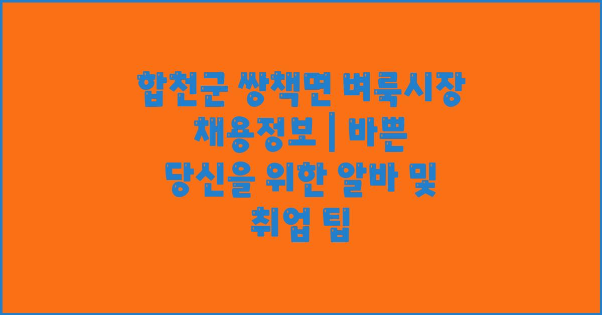 📌 합천군 쌍책면 벼룩시장 채용정보의 중요성